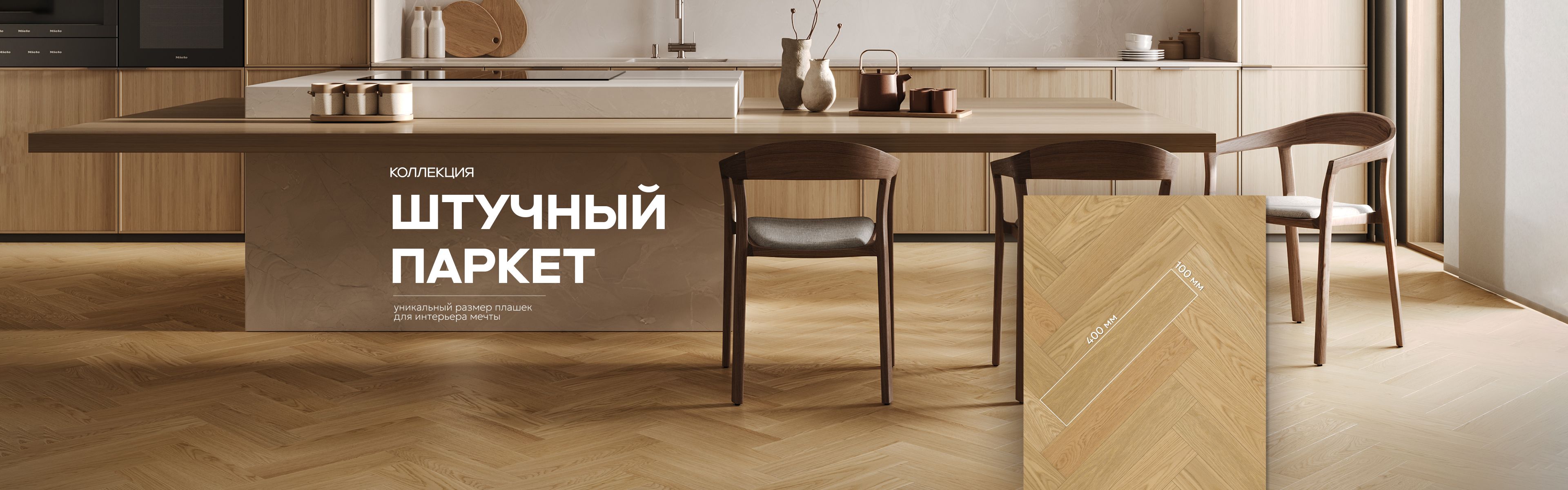 В коллекции нет сложных узоров, как в «ёлочке» или «шевроне», — только прямые линии, строгая геометрия и универсальность, которая делает пространство пола максимально понятным.